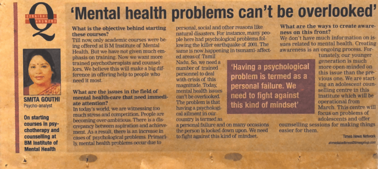3. Paper for Samiksa- Journal of Indian Psychoanalytical Society. Psychoanalytical approach for Mental Health, in a medical journal – Care for Health.
